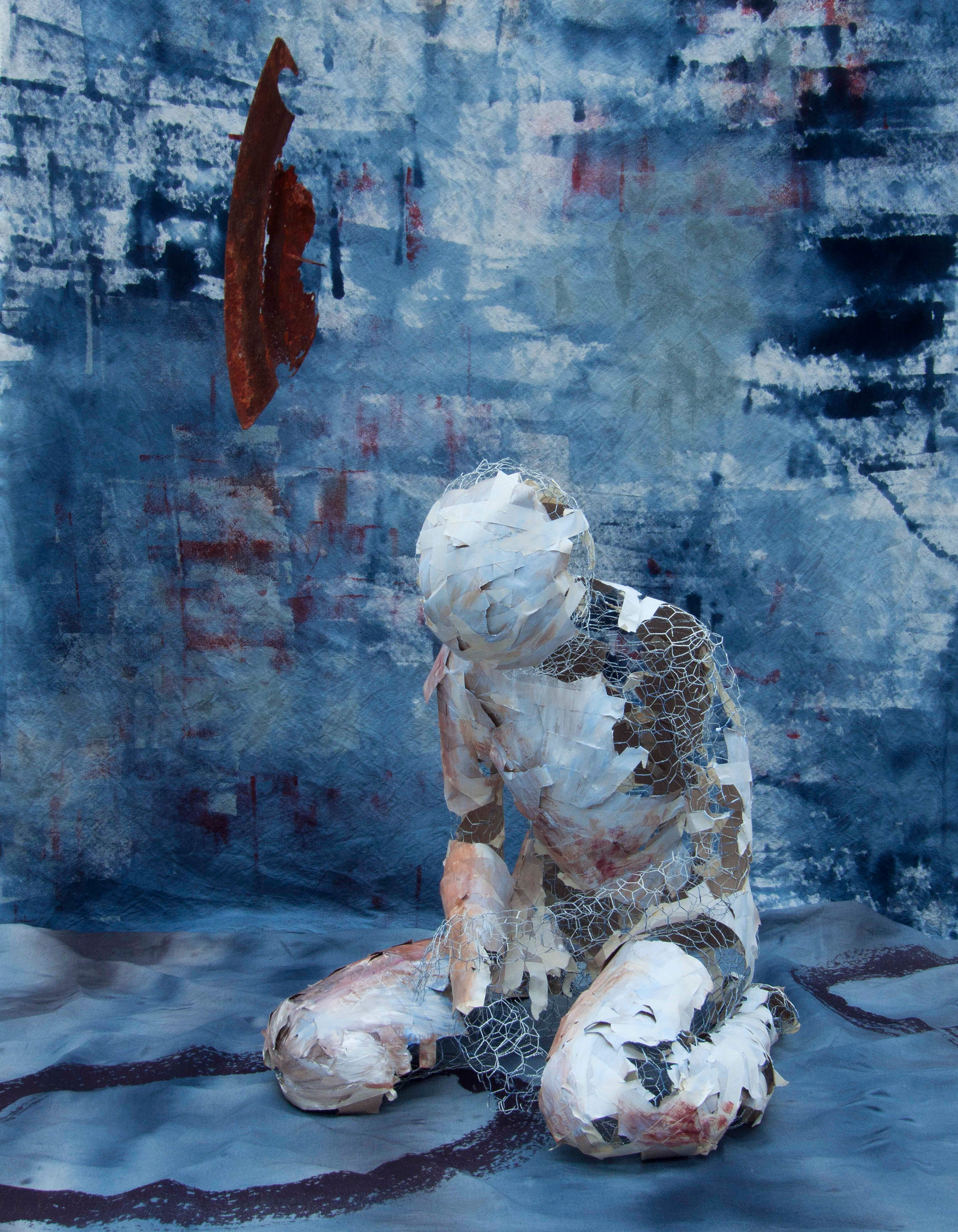 Installation, skulptur i metall och målade textilier (2012)